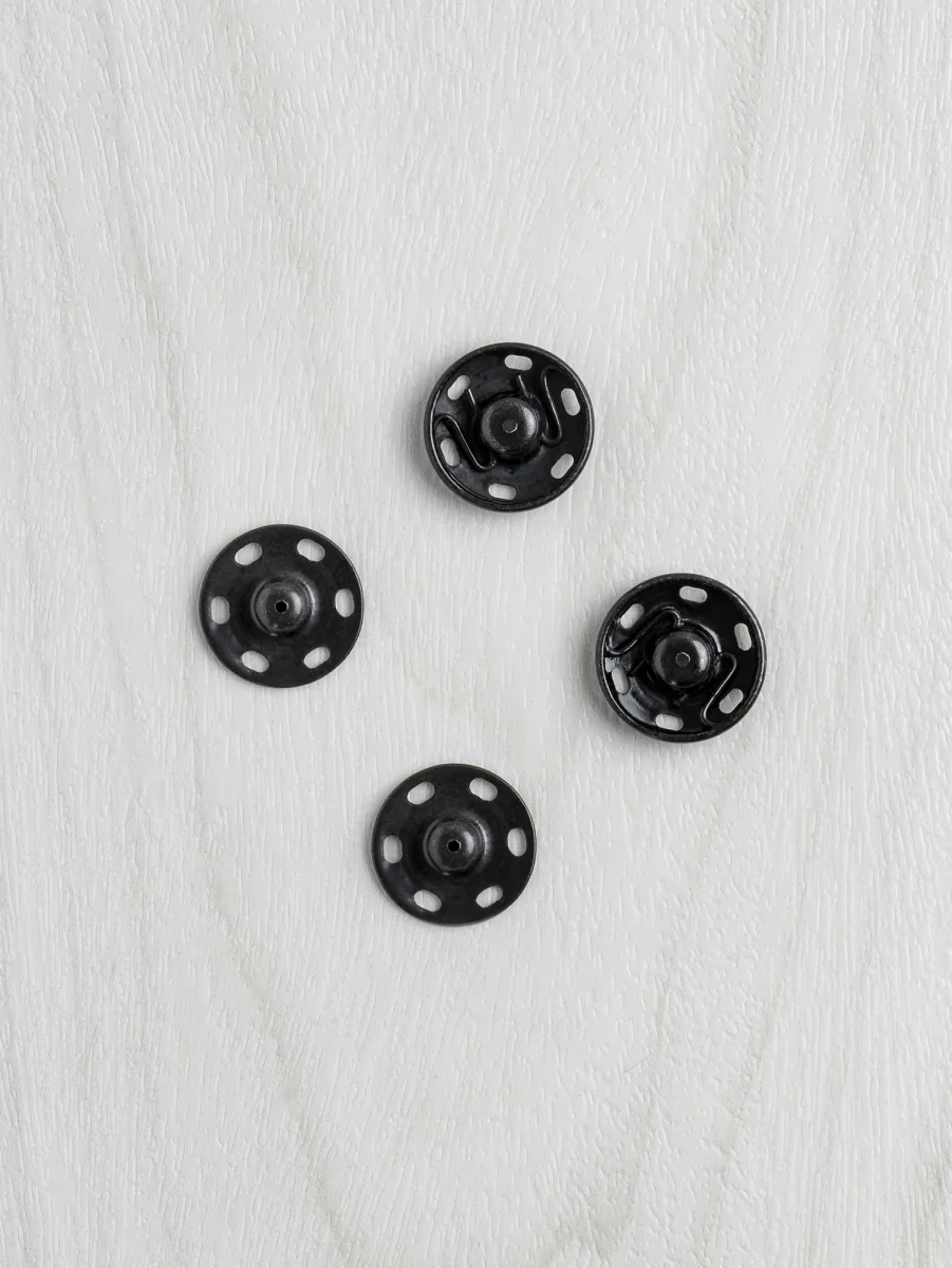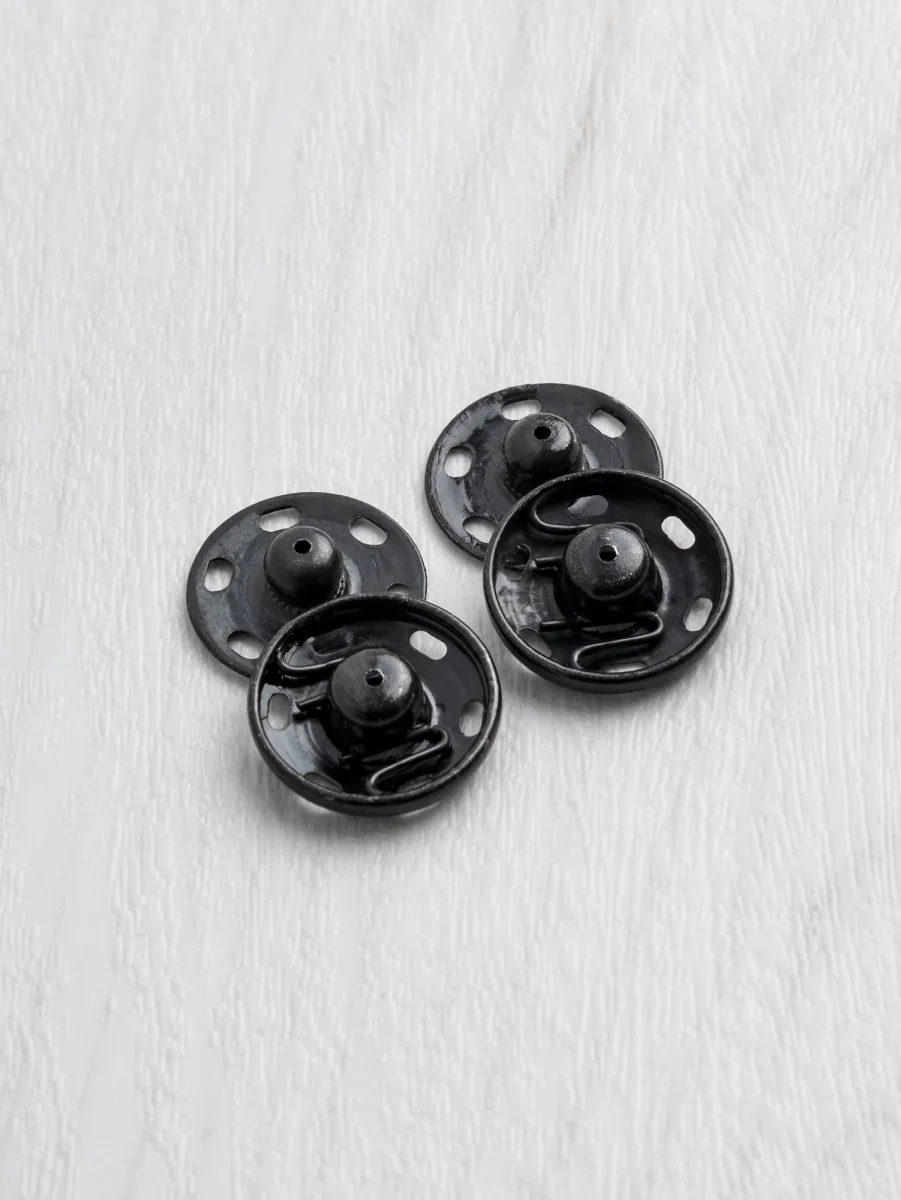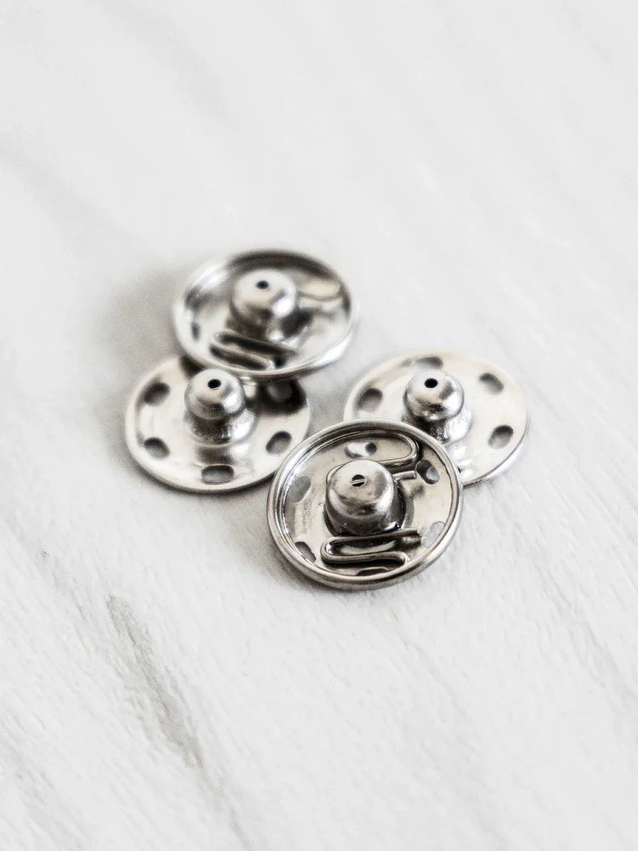 Looking for a nearly invisible way to close that handmade sweater or quilted jacket? These jumbo snap buttons are here to save the day! At 3/4″ (18 mm) wide, they are sturdy and rust proof. Sewn in by hand, you won’t see the top snap from the outside of your garment.