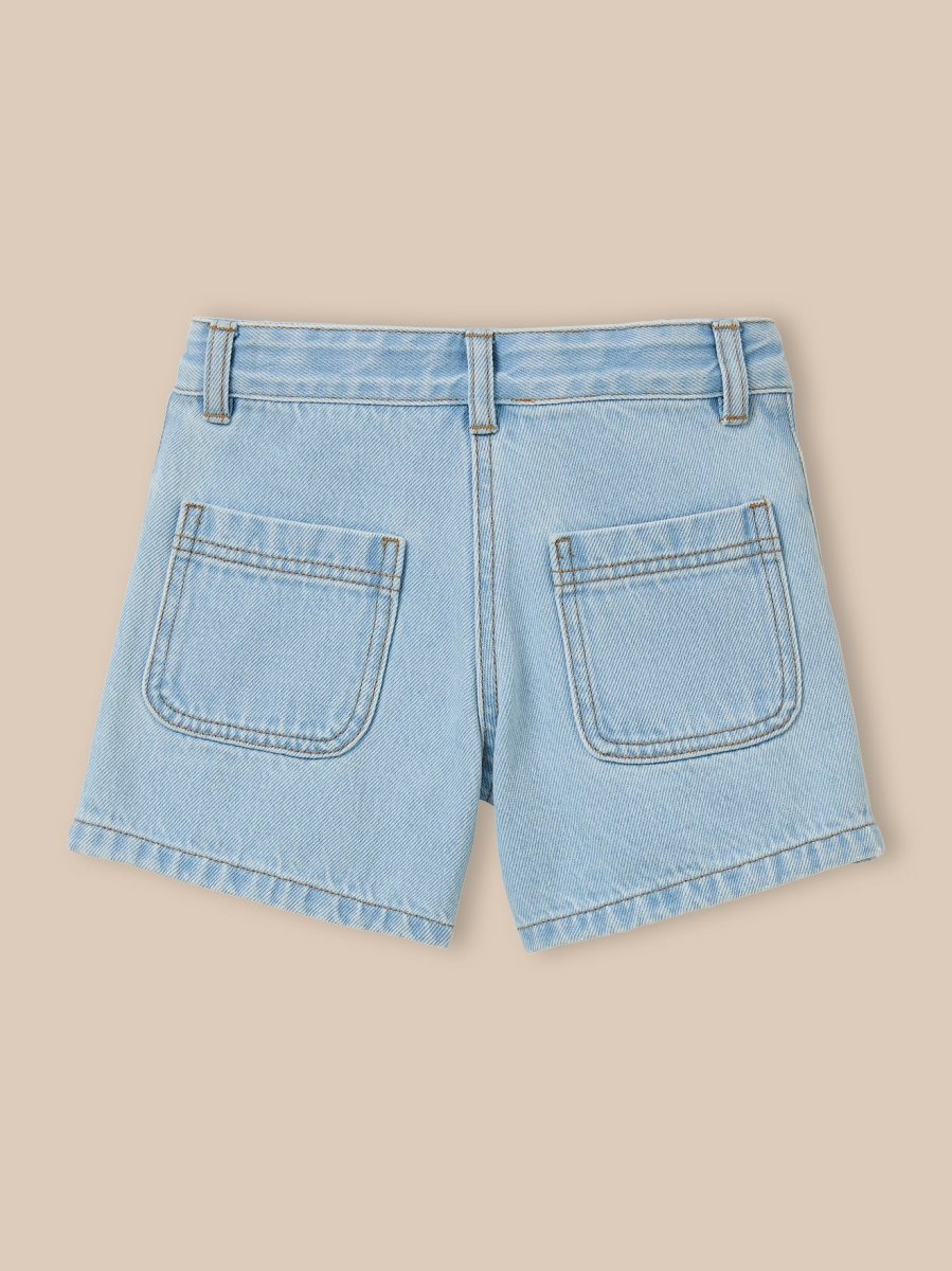 Short en denim bleach au style intemporel, doté de poches plaquées à l’avant et au dos, et d’une coupe confortable. Taille ajustable de l’intérieur par élastique boutonné Fermeture par bouton, passants à la ceinture+. Pour un habillage facile, nos pantalons ont un bouton-pression jusqu’à la taille 10 ans.