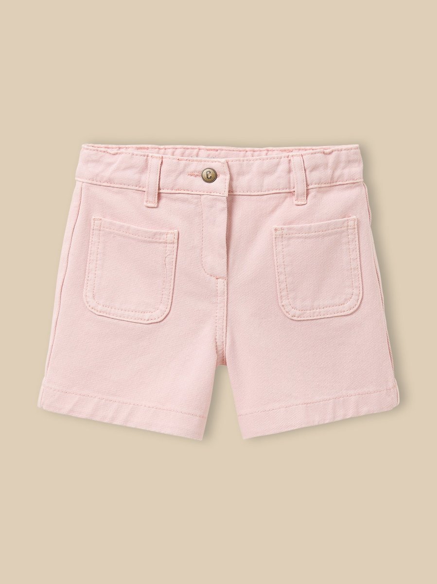Short en jean aux couleurs pastel. Essentiel de la valise d’été qui se porte avec absolument tout. Fermeture par bouton-pression et glissière Taille ajustable de l’intérieur par élastique boutonné 2 poches plaquées devant et au dos