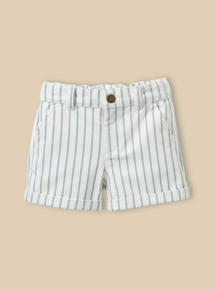 Short finement rayé, doté d’une taille élastiquée au dos pour un ajustement parfait. Élégant et confortable, il est idéal pour les journées d’été.