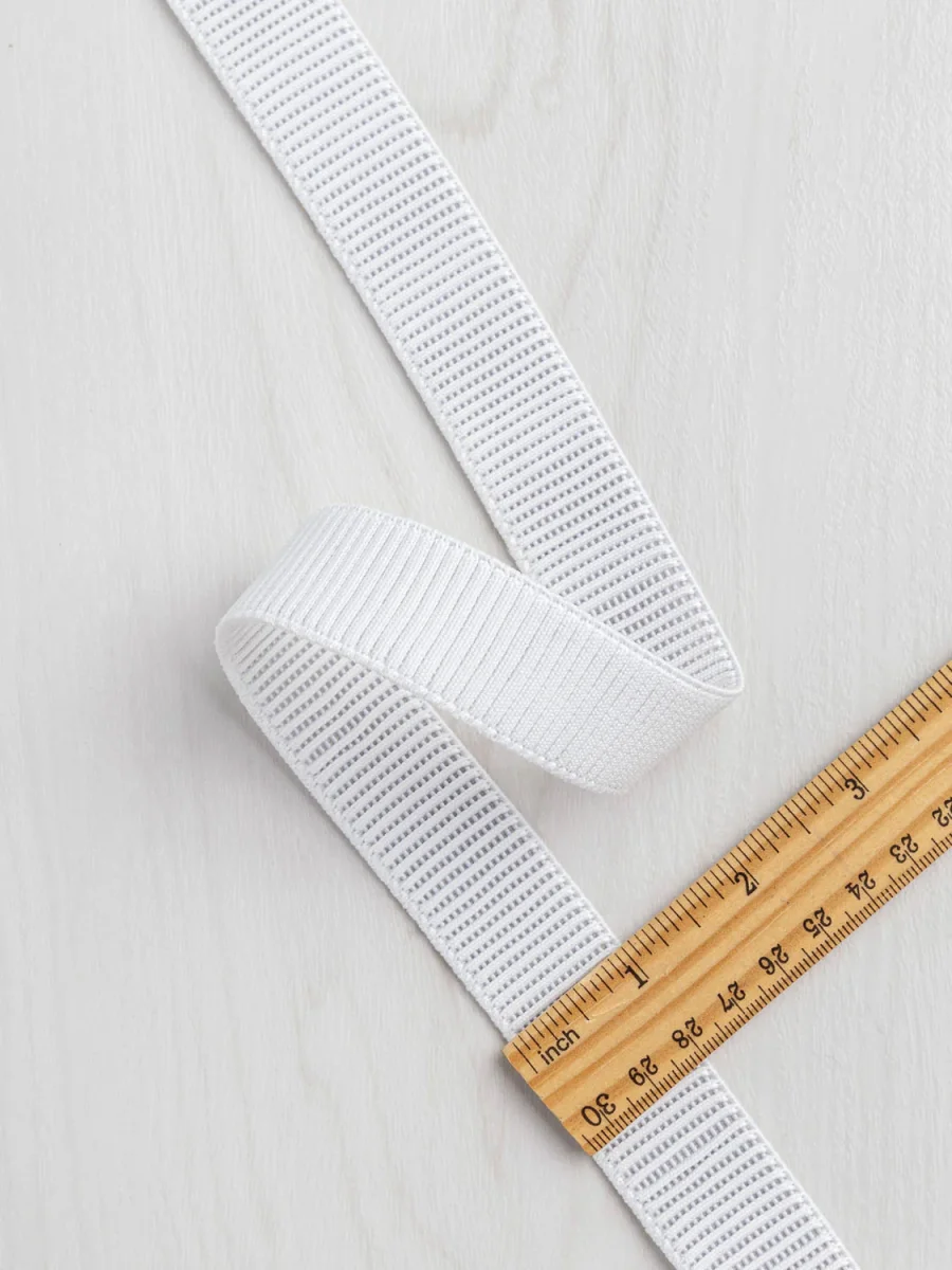 A studio fave, this Canadian pre-shrunk polyester elastic is incredibly stable and easy to work with. Perfect for waistbands, cuffs, and anywhere where you need a dependable stretch, it has great recovery and durability. Sold by the metre.