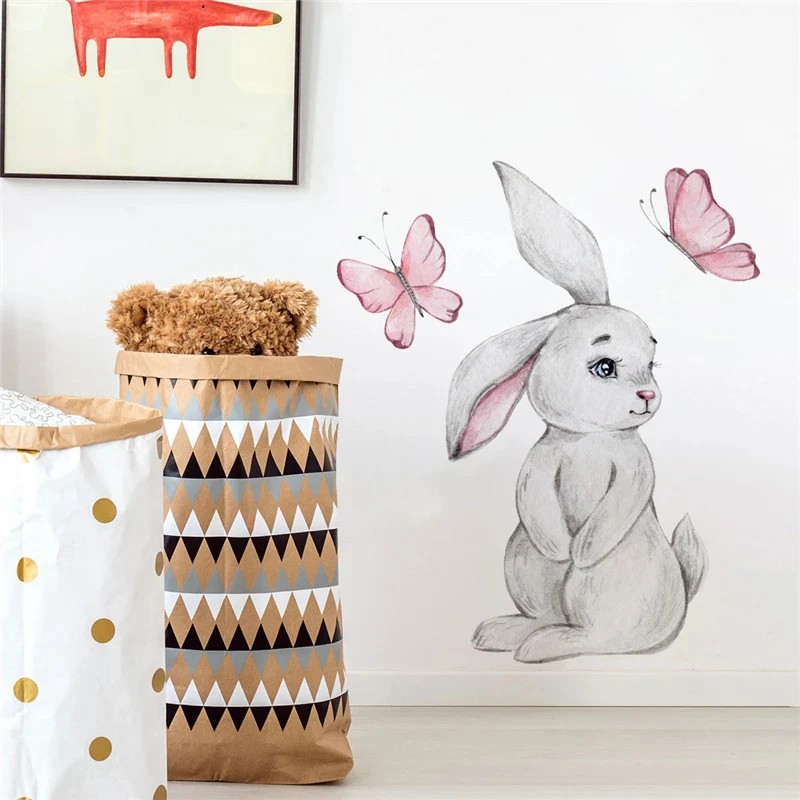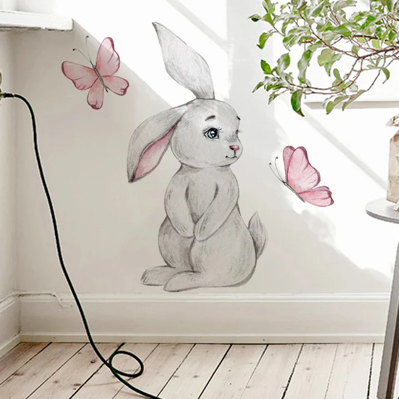 Sticker Mural Chambre avec un Lapin et Deux Papillons