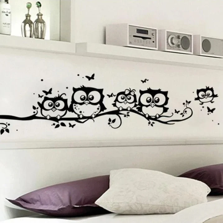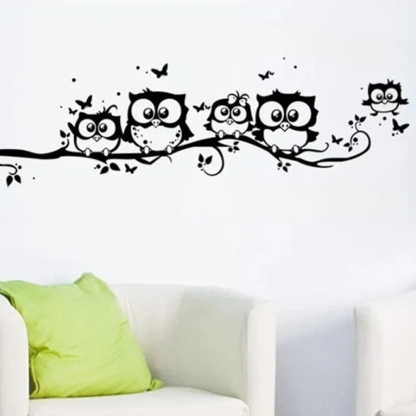 Sticker Mural Salon avec des Hiboux et des Papillons sur une Branche