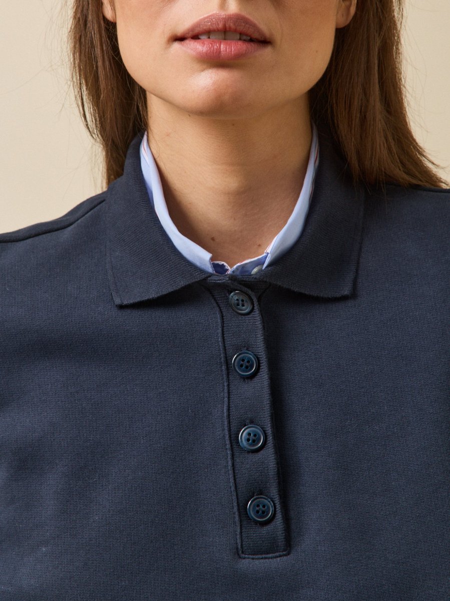 - Col polo, patte boutonnée ; manches longues, emmanchures descendues