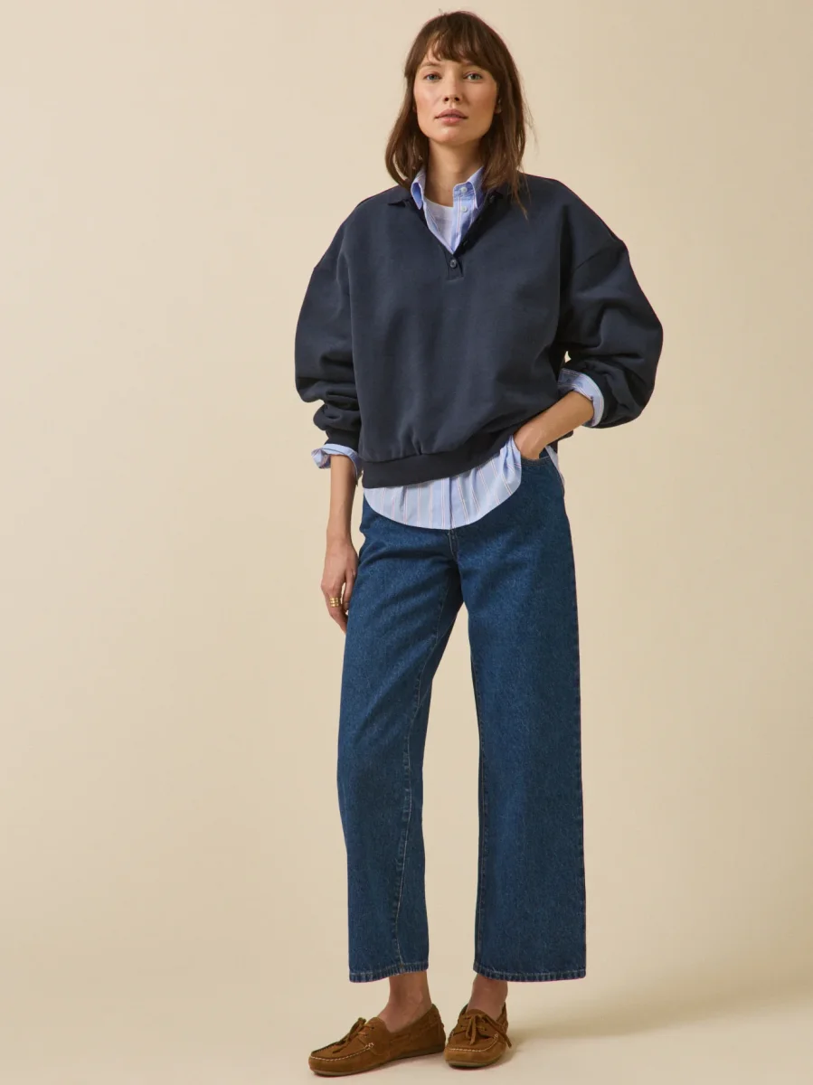 Confectionné au Portugal, le sweat en molleton gratté allie confort ultra doux et allure moderne. Un nouveau volume pour un nouveau chic.