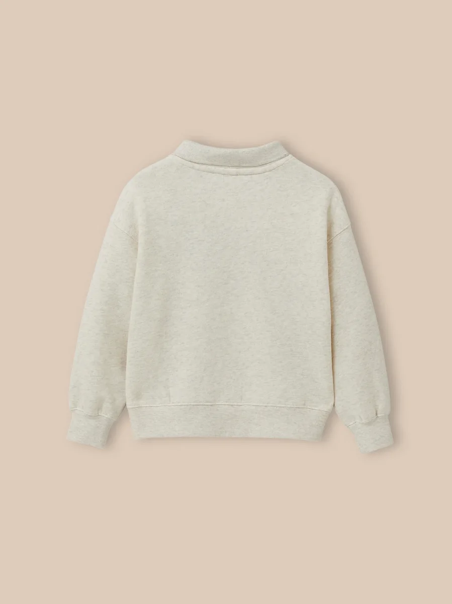 Avec son col polo élégant et son motif brodé, ce sweat revisite le style campus avec modernité.