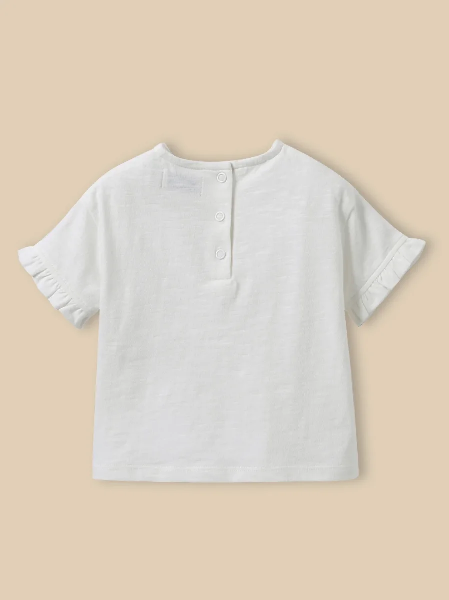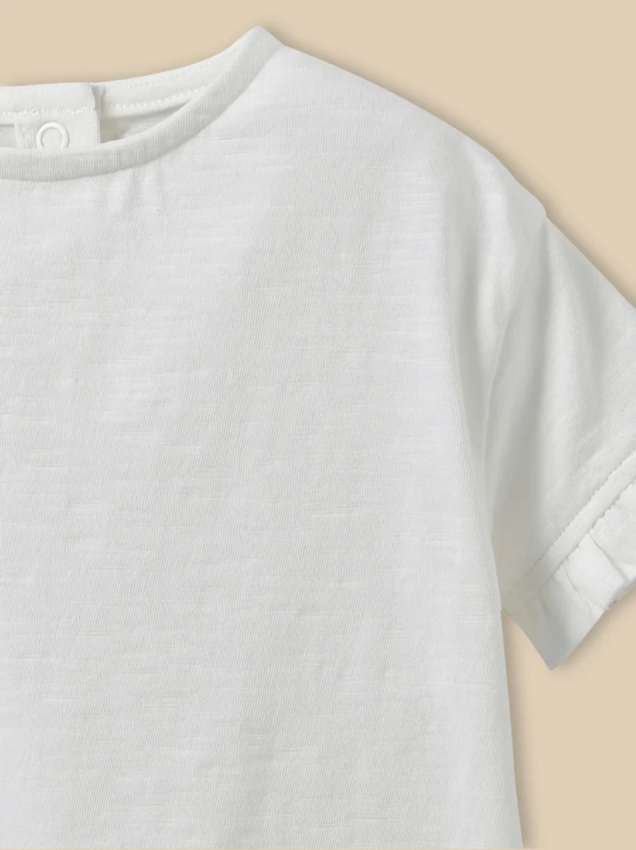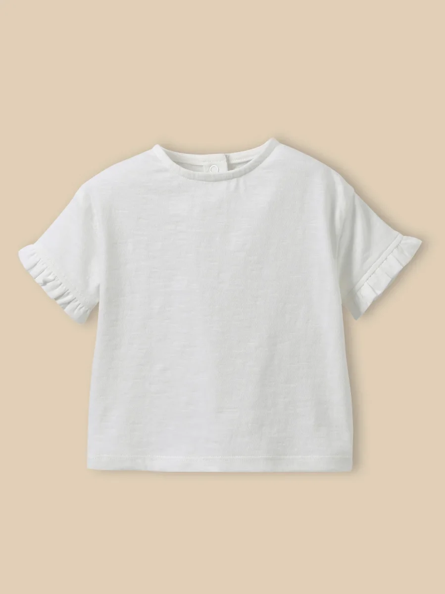 Simple, épuré et raffiné, ce tee-shirt aux manches volantées renouvelle le vestiaire avec style !