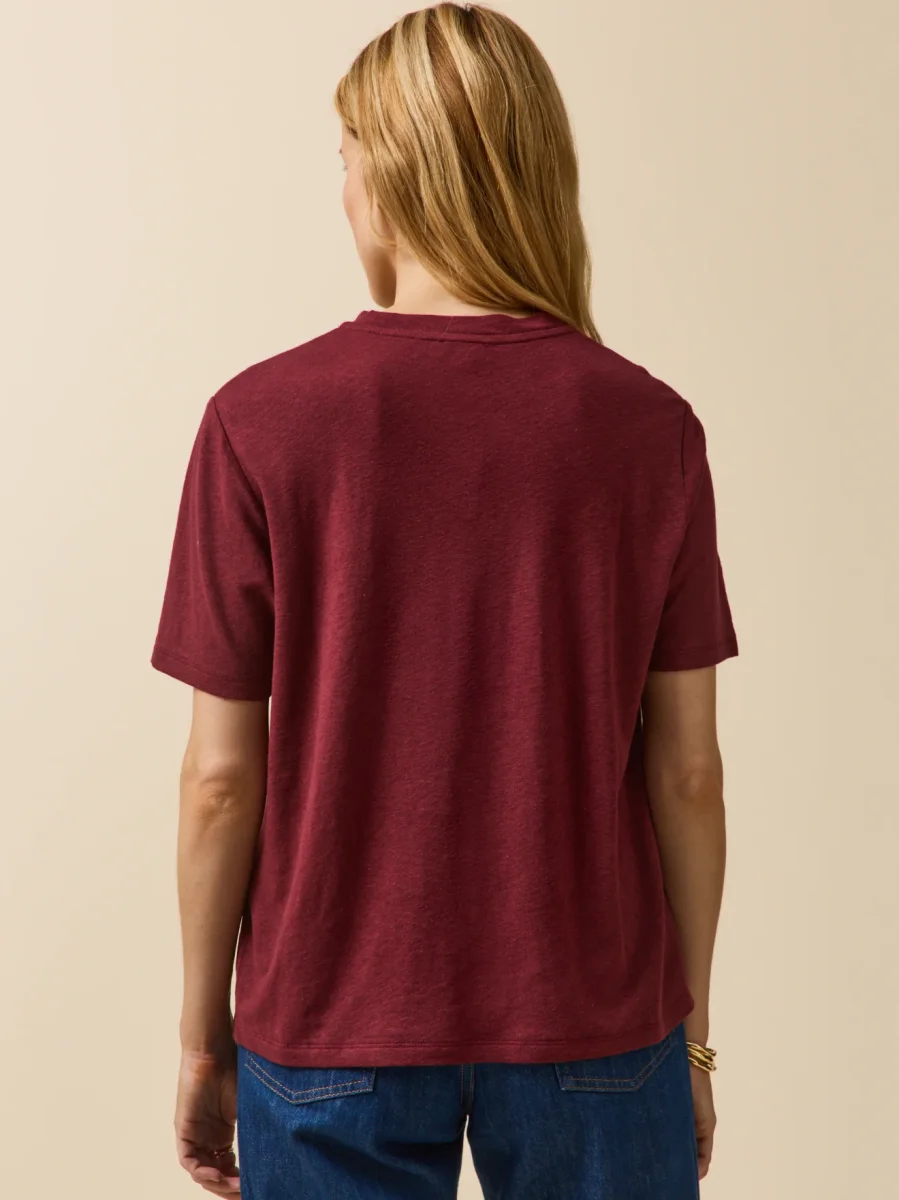 Avec sa belle matière mélangée, il s’offre le look du lin, mais en version plus fluide, plus féminine. Avec ses coloris dans l’air du temps, le T-shirt assure une allure facile et une élégance naturelle.