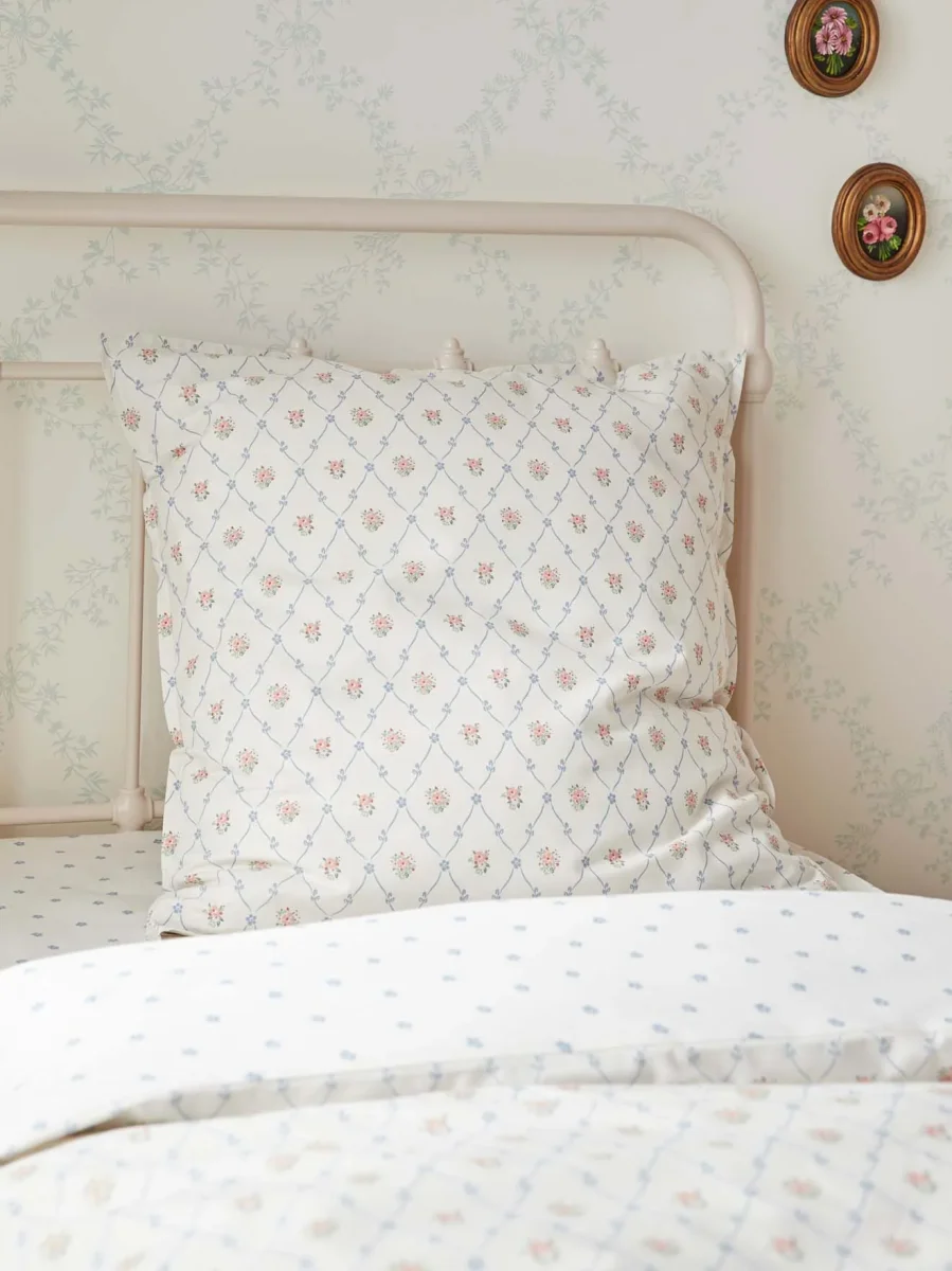 Imprimé romantique et élégant spécialement dessiné pour Cyrillus. Dos fleurs bleues sur fond blanc.