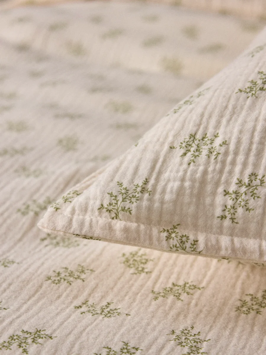 Taie d’oreiller en gaze de coton douce et moelleuse recouverte sur les 2 faces d’un imprimé végétal frais et délicat. Une création Cyrillus.