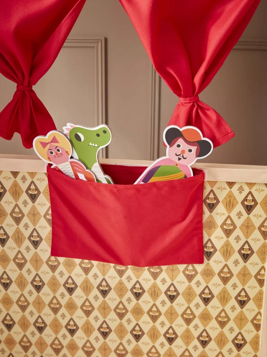 Théâtre en bois naturel à l’esprit rétro illustré par Ingela P. Arrhenius. Inventer des histoires aide à développer l’imaginaire et stimuler le langage.
