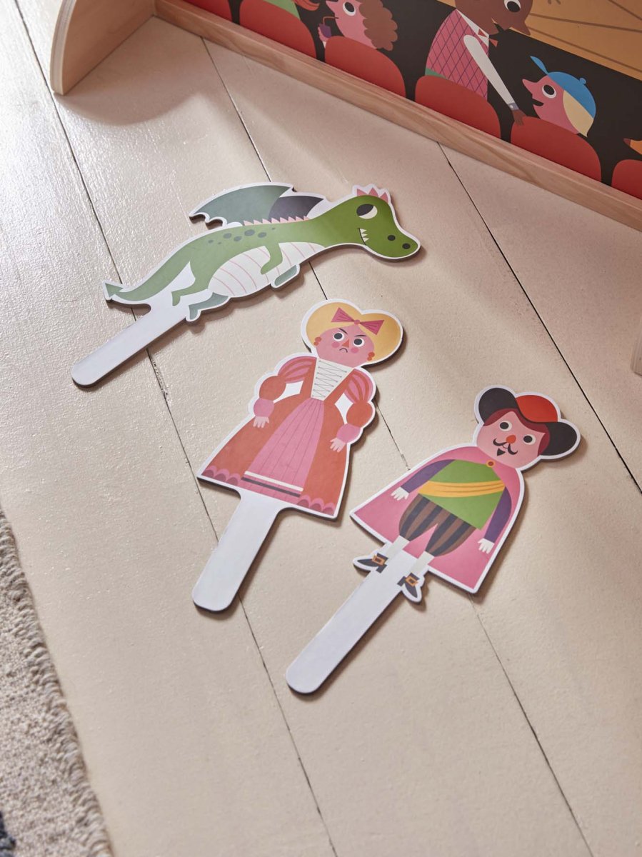 Livré avec 3 marionnettes en silhouette cartonnées. Livré à monter avec notice. À partir de 3 ans. Jouet conforme aux exigences des normes européennes.