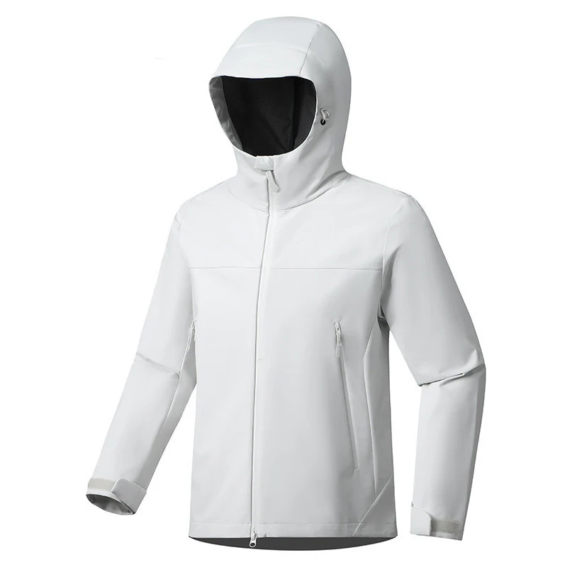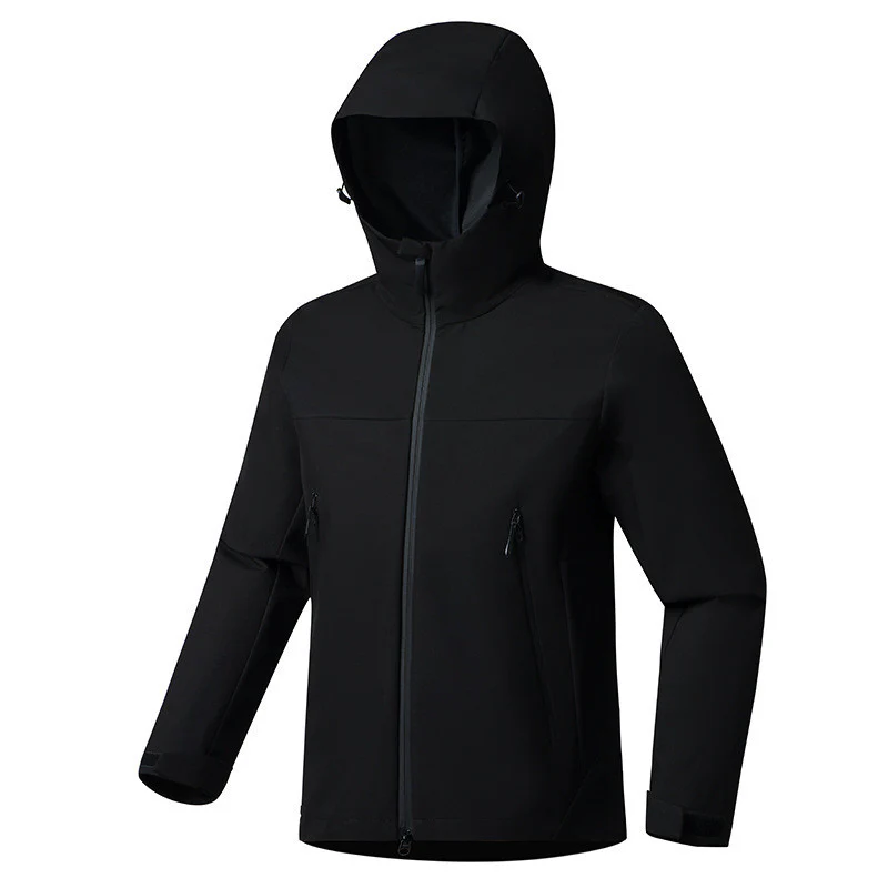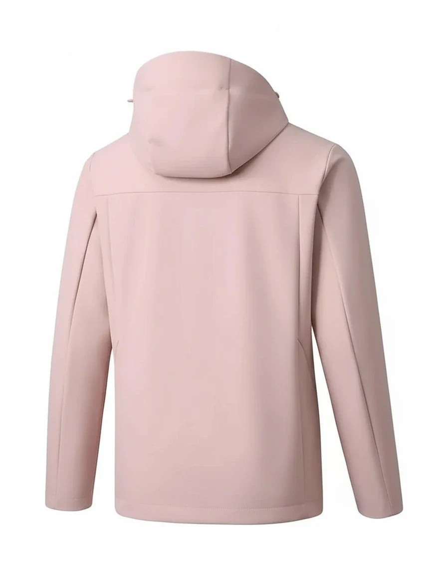 Veste softshell légère, déperlante et coupe-vent. Conçue pour le sport et les trajets par météo changeante. Tissu polyester technique à séchage rapide, capuche couvrante et finitions soignées.