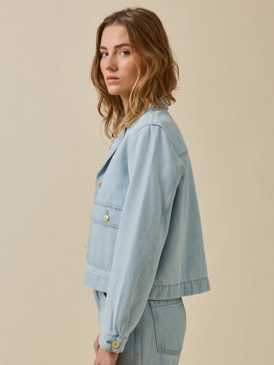 Elle est une pièce phare du dressing urbain quotidien. Basique mais jamais banale, la veste en jean se réinvente avec un col tailleur pour inspirer les tendances de la saison.