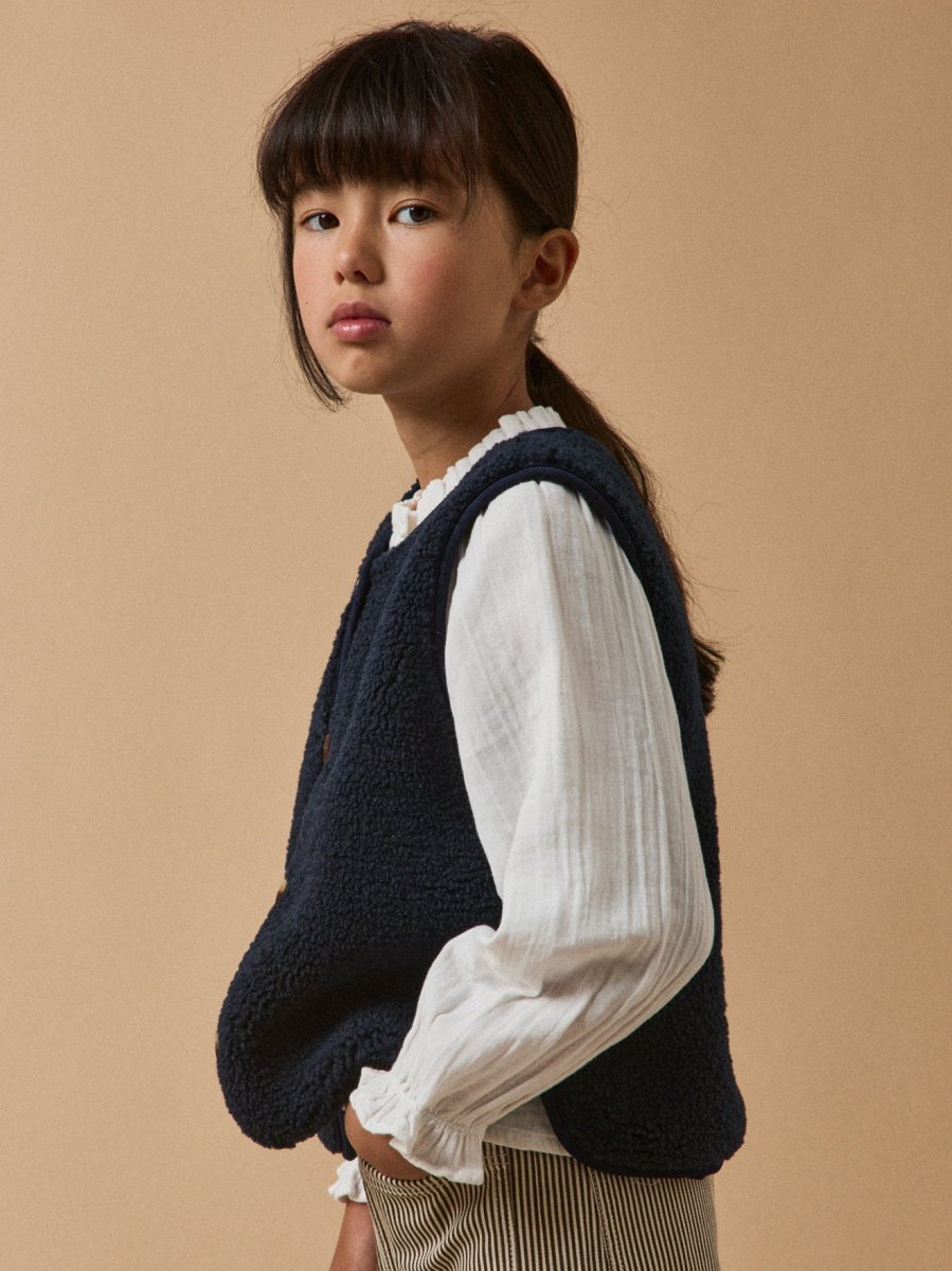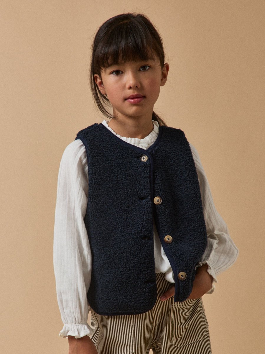 Style, douceur et finitions soignées. La veste moutonnée sans manches à fière allure de l’automne au printemps : en veste d’extérieur en entrée de saison, en cardigan au coeur de l’hiver.