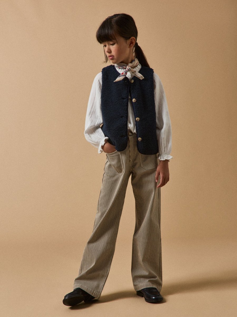 Style, douceur et finitions soignées. La veste moutonnée sans manches à fière allure de l’automne au printemps : en veste d’extérieur en entrée de saison, en cardigan au coeur de l’hiver. Biais en velours contrasté Fermeture par boutons. Petites fentes côtés
