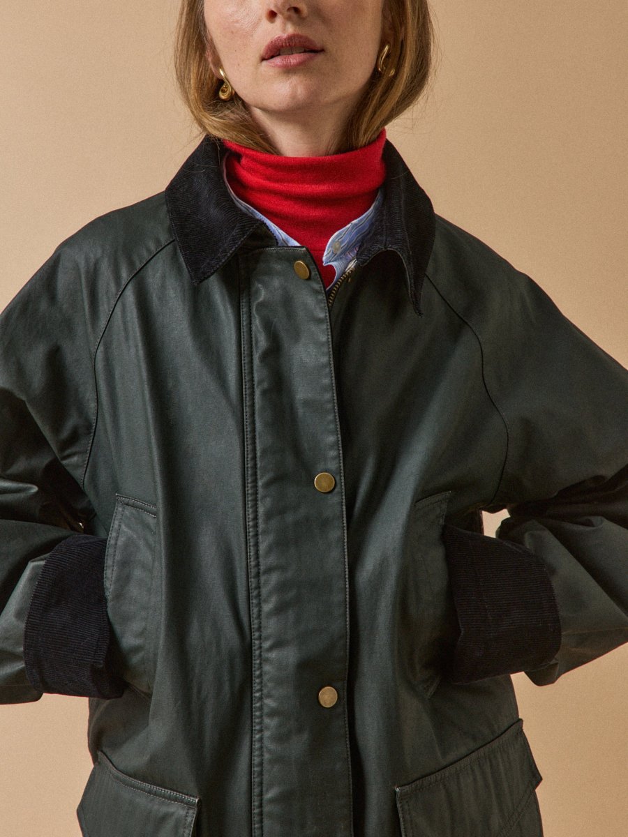 Esprit sport chic, elle se prête à un vestiaire mi-saison, qu’il soit urbain ou décontracté. Travaillée dans un coton enduit, cette pièce confortable inspirée de la veste de chasse gagne en modernité avec ses finitions en velours côtelé contrasté et sa doublure fantaisie carreaux.