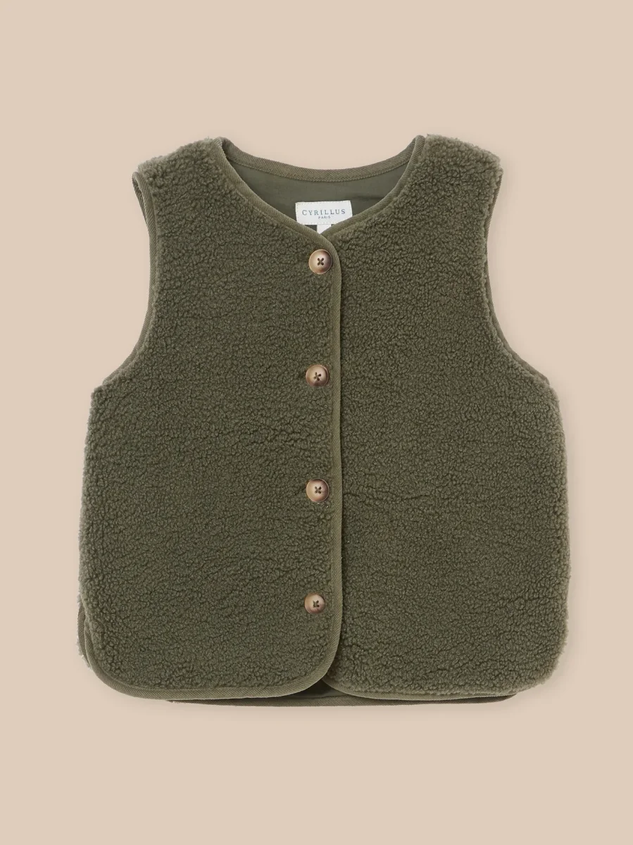 En sherpa tout doux, cette veste sans manches offre un effet cocooning très actuel et réchauffe une chemise au coeur de l’hiver. Fermeture par boutons Doublure en voile de coton Finition par un biais en velours. Longueur sous fesses Longueur épaules bas : 45 cm, longueur sous fesse
