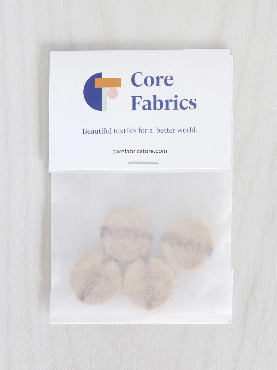 These simple, rustic wooden buttons add a touch of organic warmth to any make. With a burnt stripe to add visual interest, they’re a simple way to finish any garment.